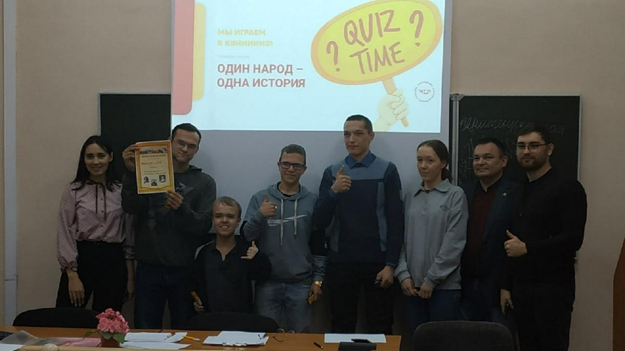 22 ноября в БФ УУНиТ был проведен исторический квиз "Один народ – одна история", в котором приняли участие студенты 1-4 курсов социально-гуманитарного факультета. Организатором квиза стало региональное отделение Общероссийской общественной организации политического просвещения и инициатив "Молодёжь СПРАВЕДЛИВОЙ РОССИИ" в Республике Башкортостан. Исторический квиз «Один народ - одна история» идёт по всей РБ и его цель состоит в формирование у студентов любви к своей Родине, чувства гордости за Родину и народ, уважения к его великими свершением.
