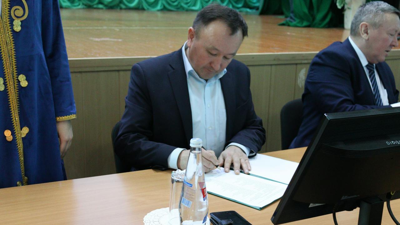 В завершении официальной части встречи был подписан договор директором БФ УУНиТ и главой Администрации Краснокамского района. Они обменялись рукопожатием и памятными подарками.