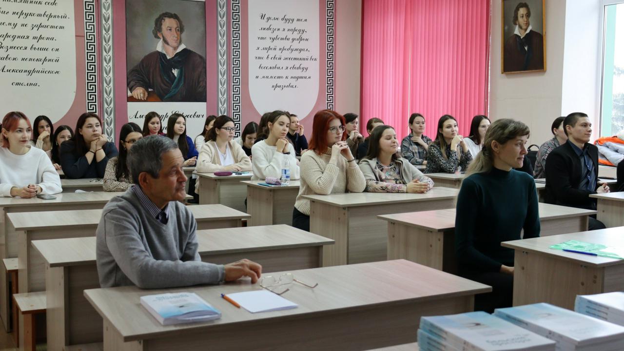 19 декабря по приглашению кафедры филологии в Бирский филиал приехали достаточно известные писатели из Новосибирска и Уфы. В "пушкинской аудитории" они встретились со студентами и преподавателями факультета филологии и межкультурных коммуникаций. Поговорить о творчестве, а также помочь пишущим прозу и стихи студентам сделать их первые шаги на пути к писательскому успеху, приехали Татаренко Юрий Анатольевич - поэт, прозаик, критик, литературный переводчик, театральный педагог, автор девяти книг стихов, член Союза писателей России, Союза журналистов России, Союза театральных деятелей РФ, лауреат всероссийских и международных литературных конкурсов и Чураева Светлана Рустэмовна - поэт, прозаик, драматург, литературный переводчик, секретарь Союза писателей России, председатель Объединения русскоязычных писателей Союза писателей Башкортостана, заместитель главного редактора журнала "Бельские просторы", лауреат ряда литературных премий и конкурсов.