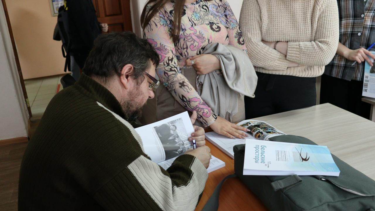 В первой части встречи гости рассказали о своём творчестве, о журнале "Бельские просторы", ответили на вопросы слушателей, читали свои стихотворения на разные темы.