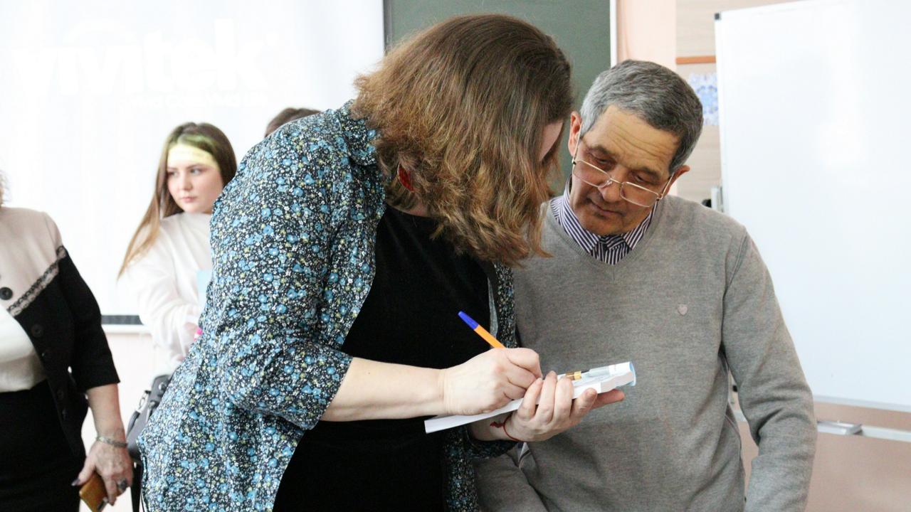 Затем писатели беседовали с талантливыми студентами объединения "Литэра", которым руководит Ярыжнов Дмитрий Сергеевич, выпускник ФФиМК . Юрий Анатольевич и Светлана Рустэмовна в интересом слушали начинающих поэтов и прозаиков и давали им советы, касающиеся развития писательского мастерства. Был проведен небольшой мастер-класс по созданию трехстишия.