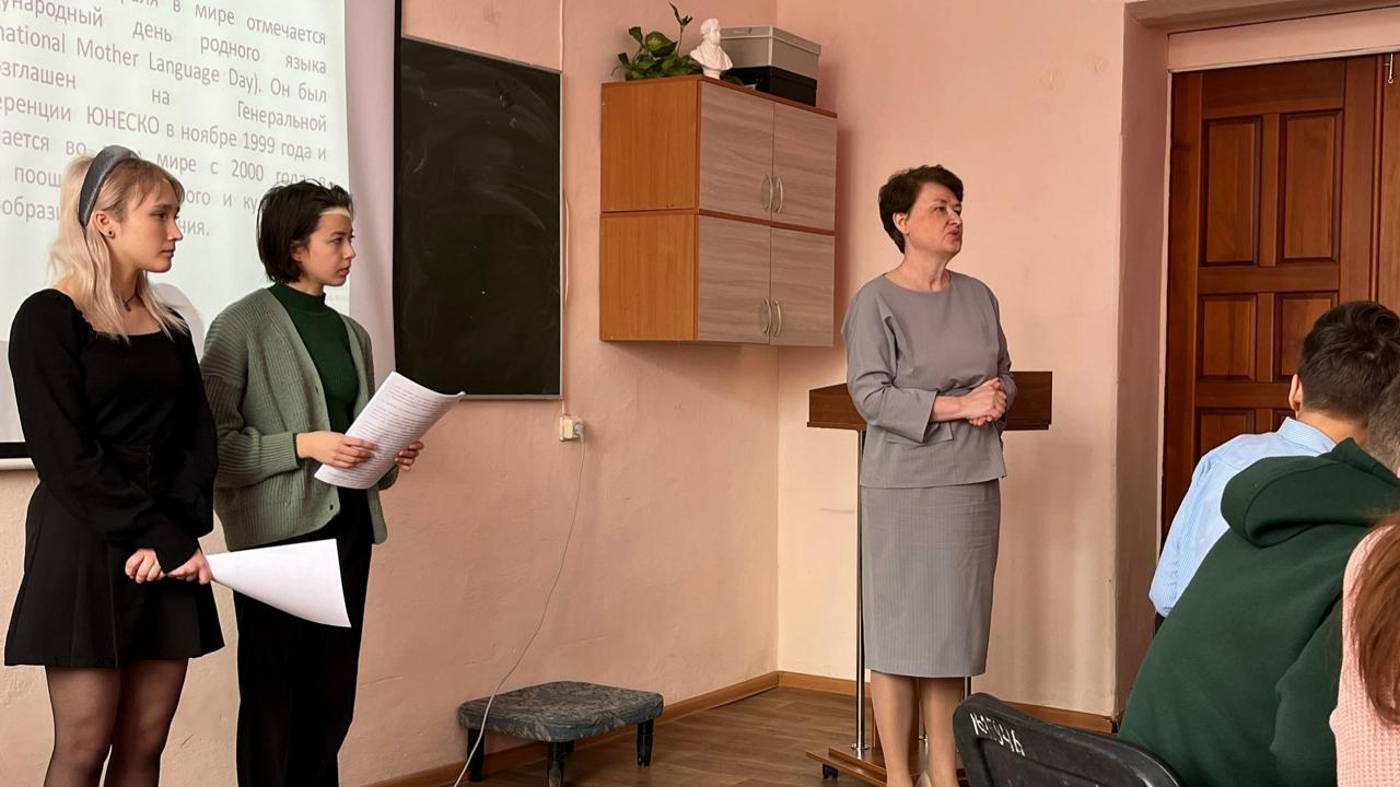 21 февраля на факультете филологии и межкультурных коммуникаций был проведен брей-ринг «Истинная любовь к своей стране немыслима без любви к своему языку», посвященный Международному Дню родного языка. Организацией и проведением мероприятия занимались студентки 2 курса ФФиМК Галеева Ольга и Хатмуллина Регина под руководством доцента, доктора филологических наук, заведующей кафедрой филологии Абдуллиной Амины Шакирьяновной.