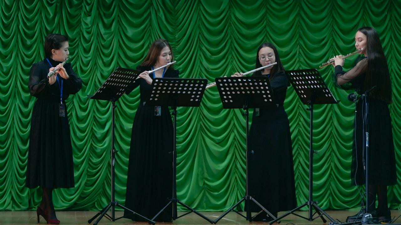На сцене БФ УУНиТ выступили лучшие студенты и ассистенты-стажеры УГИИ им. З.Исмагилова, которые уже имеют музыкальные достижения, лауреатские звания и даже сольные проекты. Открыл концертную программу ансамбль «Флейтиссимо», который является лауреатом международных и всероссийских номеров. Продолжили концерт дуэт баянистов Муфазалов Данис и Хусаинов Динар, а также Акбашев Ильмир, поразивший прекрасной игрой на курае и думбыре. Завершила мероприятие автор – исполнитель , композитор Муратзина Вероника, которая своей музыкой создала невероятную атмосферу в зале.