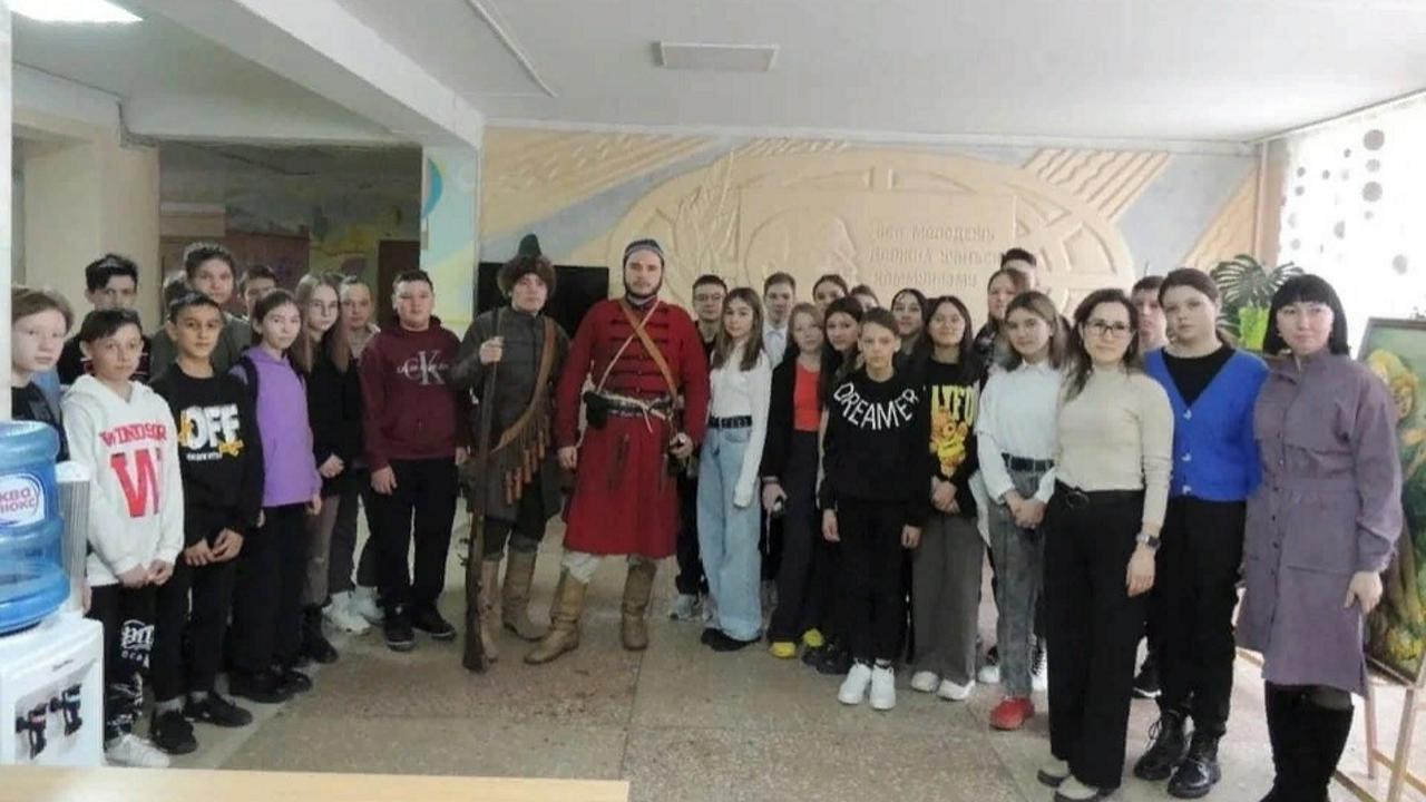 Встретили учеников "Бирские стрельцы", студенты социально-гуманитарного факультета, которые рассказали гостям о клубе исторической реконструкции.
