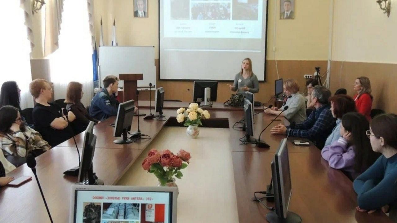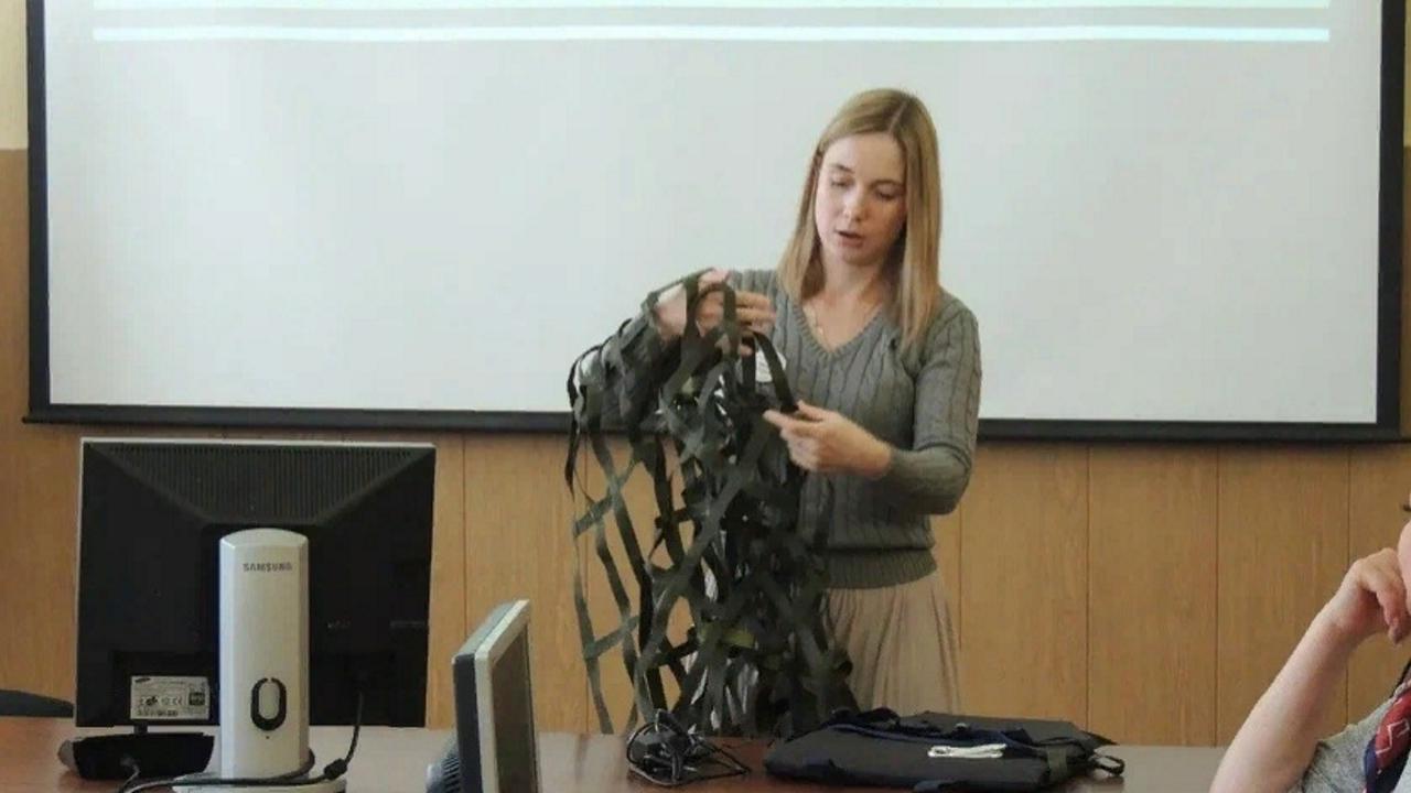 Шибиркина Дарья Анатолиевна рассказала об Общественной организации без образования юридического лица "Золотые руки Ангела", которая занимается изготовлением тактических носилок для раненых, а также различного снаряжения для военных, аптечек и прочего необходимого медицинского инвентаря. Она не только рассказала студентам о снаряжении, но и продемонстрировала его.