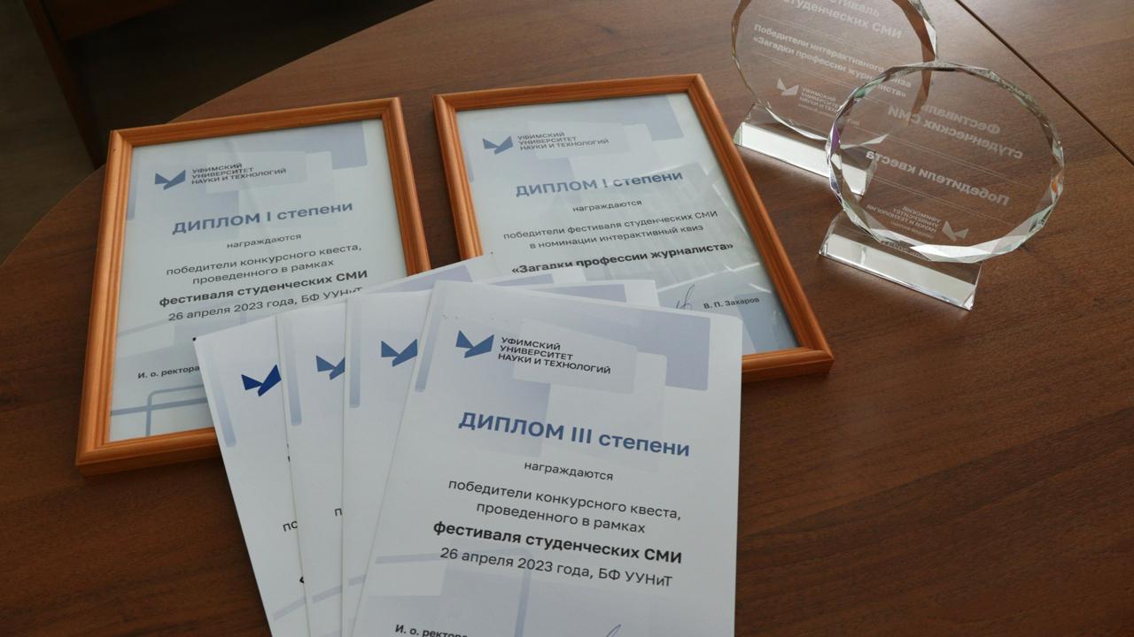Гости из Сибая, команда Студ ТВ, увезли домой один из двух главных трофеев - кубок победителей интерактивного квиза "Загадки профессии журналиста" и диплом III степени за конкурсный квест "Факультет". А кубок победителей этого квеста достался команде БФ "Artifact".
