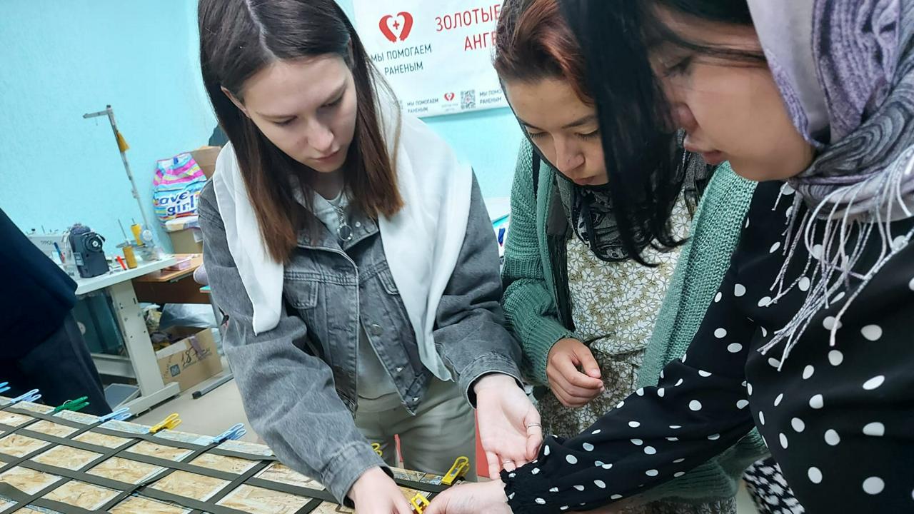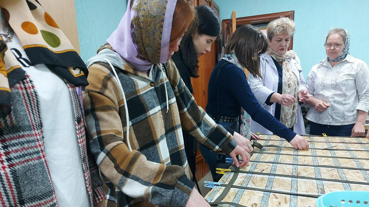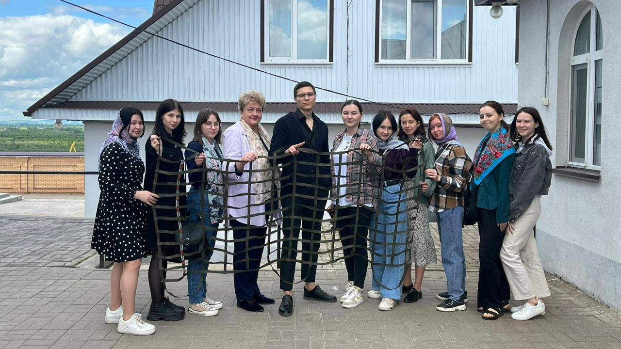 Первым мы посетили храм в честь Архистратига Божия Михаила на Галкиной горе. Величественная архитектура, великолепное убранство храма произвели на студентов неизгладимое впечатление. А радушный прием отца Евгения и его интересный рассказ о древней истории храма, легендах, связанных с его реставрацией, духовной жизни исторического Бирска, еще раз убедили студентов, в каком интересном городе они живут и учатся. Но этим наше посещение не завершилось, отец Евгений провел нас по мастерским храма, где шьют облачение для священников. И не только. Храмы помогают бойцам СВО: шьют носилки, москитные сетки и другие необходимые фронту вещи. Студенты тоже не остались в стороне, и за полчаса общими усилиями сплели носилки, которые, возможно, спасут чью-то жизнь. Получилось быстро и качественно, это отметили даже мастерицы.