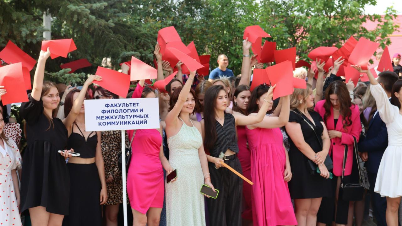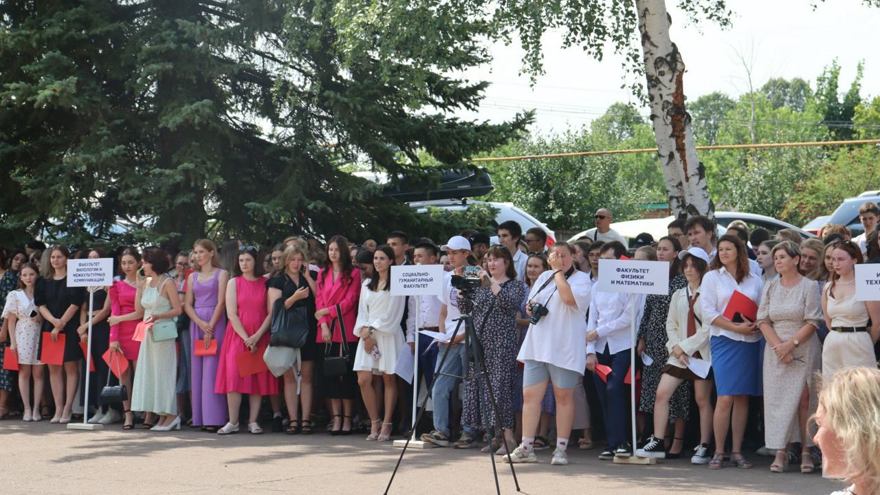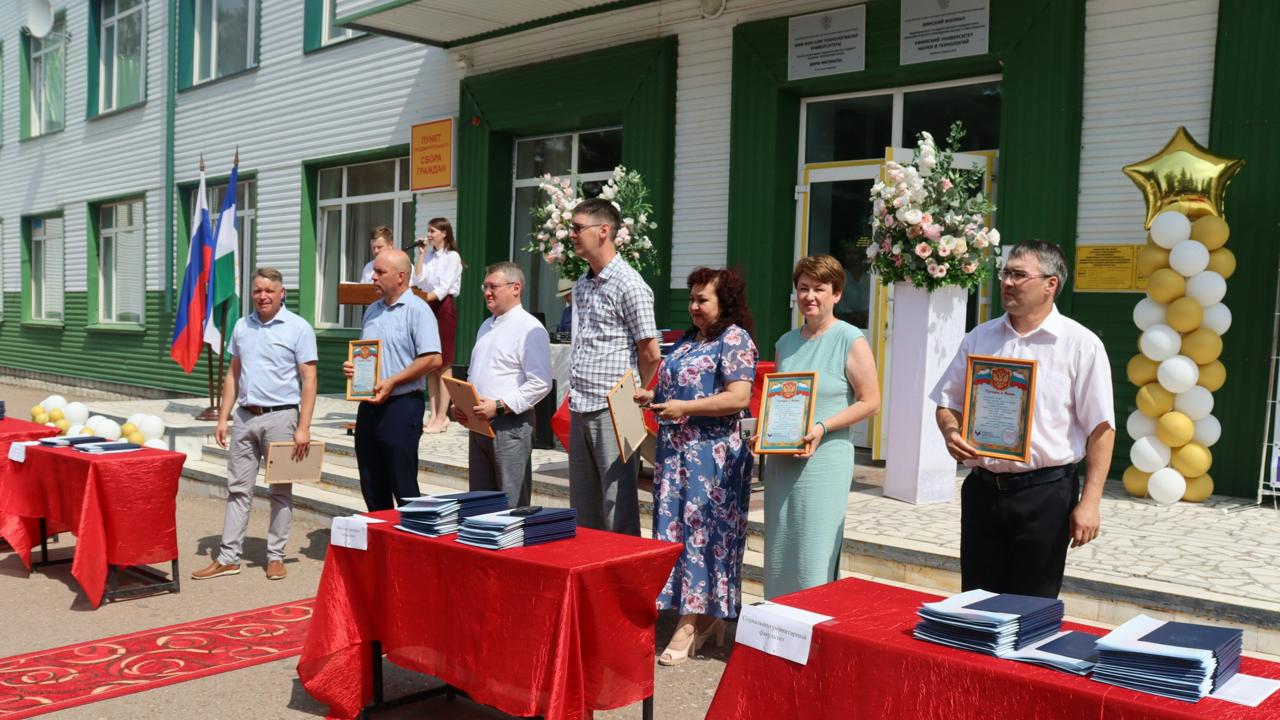 Торжественное вручение дипломов об окончании Бирского филиала Уфимского университета науки и технологий прошло в новом формате: более 300 выпускников всех факультетов и колледжа были приглашены на площадку у корпуса биологического факультета на общую для всех процедуру получения дипломов.