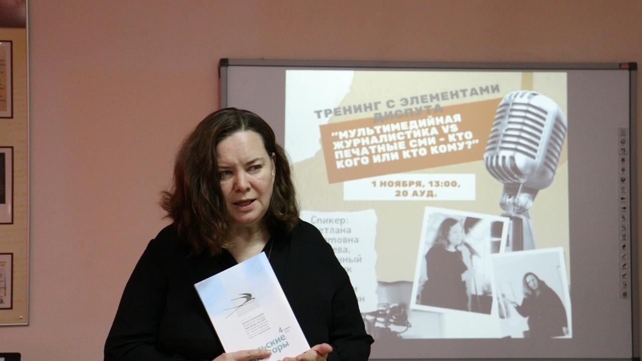 Светлана Рустэмовна щедро поделилась со студентами своими историями, взглядами на современные литературные и жизненные процессы, рассказала о нюансах писательского и издательского труда, провела мастер-класс по сбору материала для интервью. Пара часов с этим интереснейшим человеком промелькнули незаметно... Никому не хотелось прощаться, поэтому было решено поставить многоточие, чтобы встретиться снова!..