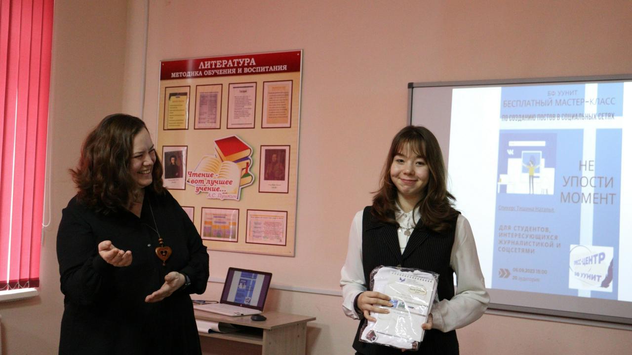 Редакционным коллективом студенческой газеты на иностранных языках "The Artifact" было снято большое интервью со Светланой Рустэмовной, после которого она провела встречу с коллективом Пресс центра БФ УУНиТ и со студентами-первокурсниками, принятыми на впервые открывшуюся в нашем филиале специальность "журналистика". Ребятам было приятно получить их рук человека, который является частью современной отечественной литературы подарки в честь их символического вступления в сообщество спецкоров Пресс Цента БФ УУНиТ.