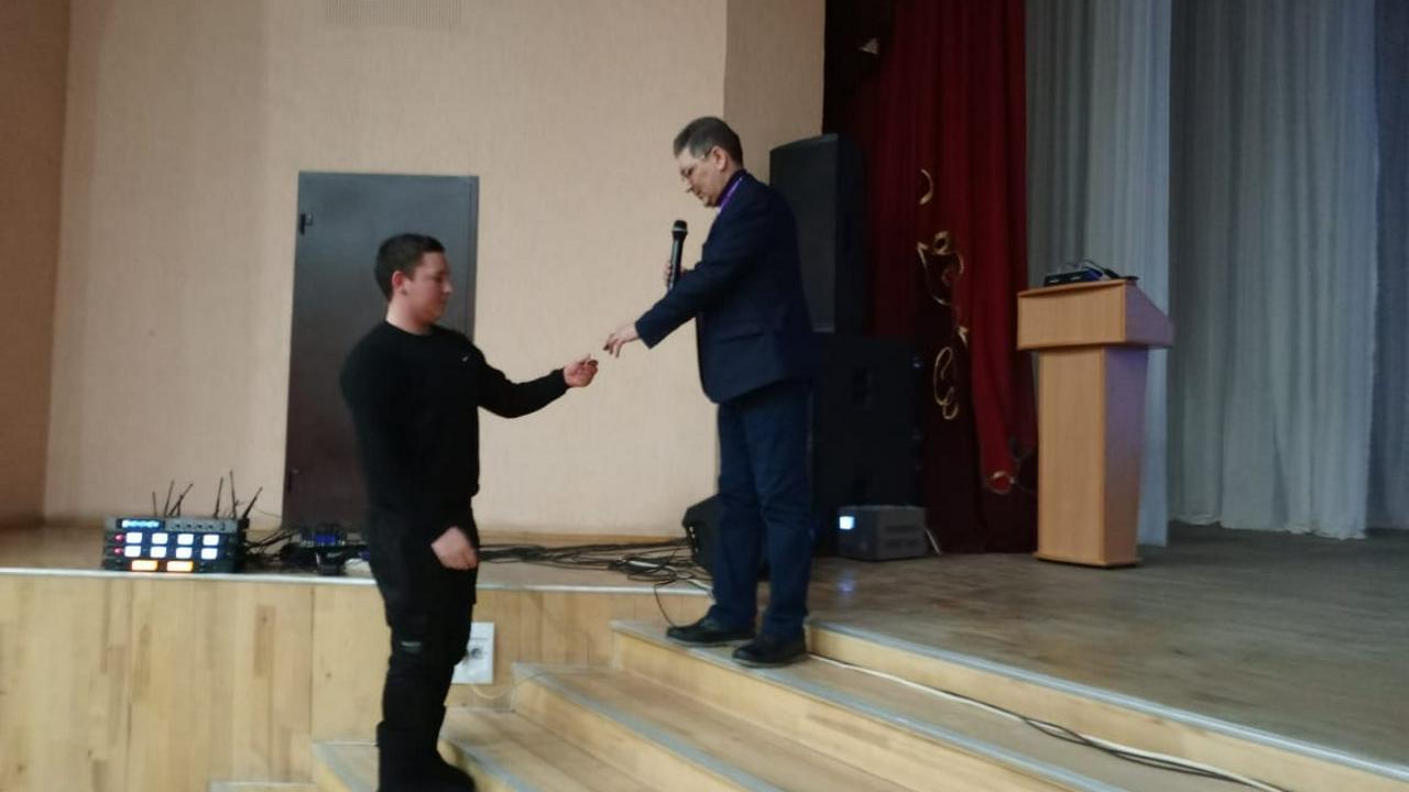 Во время профориентационной встречи выпускники смогли поучаствовать в лотерее, в результате которой методом случайной выверки чисел трем выпускникам были вручены призы – флешкарты.