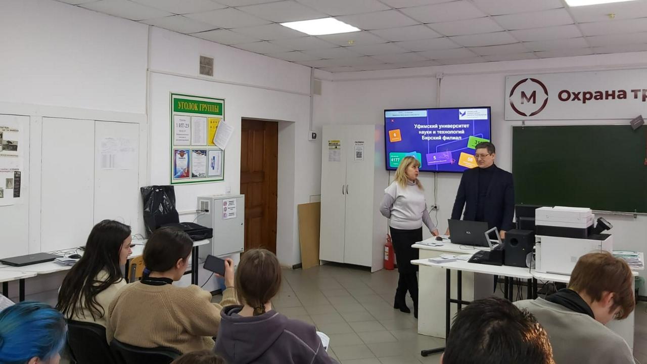 С основными правилами приема в Бирский филиал УУНиТ будущих абитуриентов познакомил начальник отдела приема, профориентации и трудоустройства Азат Фаритович Диникеев. Он рассказал о направлениях подготовки, реализуемых Бирским филиалом УУНиТ по программе бакалавриата, сориентировал на ряд соответствующих вступительных испытаний, сроках, способах и условиях подачи документов в 2024 году. Беседа имела конструктивный характер, на вопросы, которые были заданы, абитуриенты поучили исчерпывающие ответы.