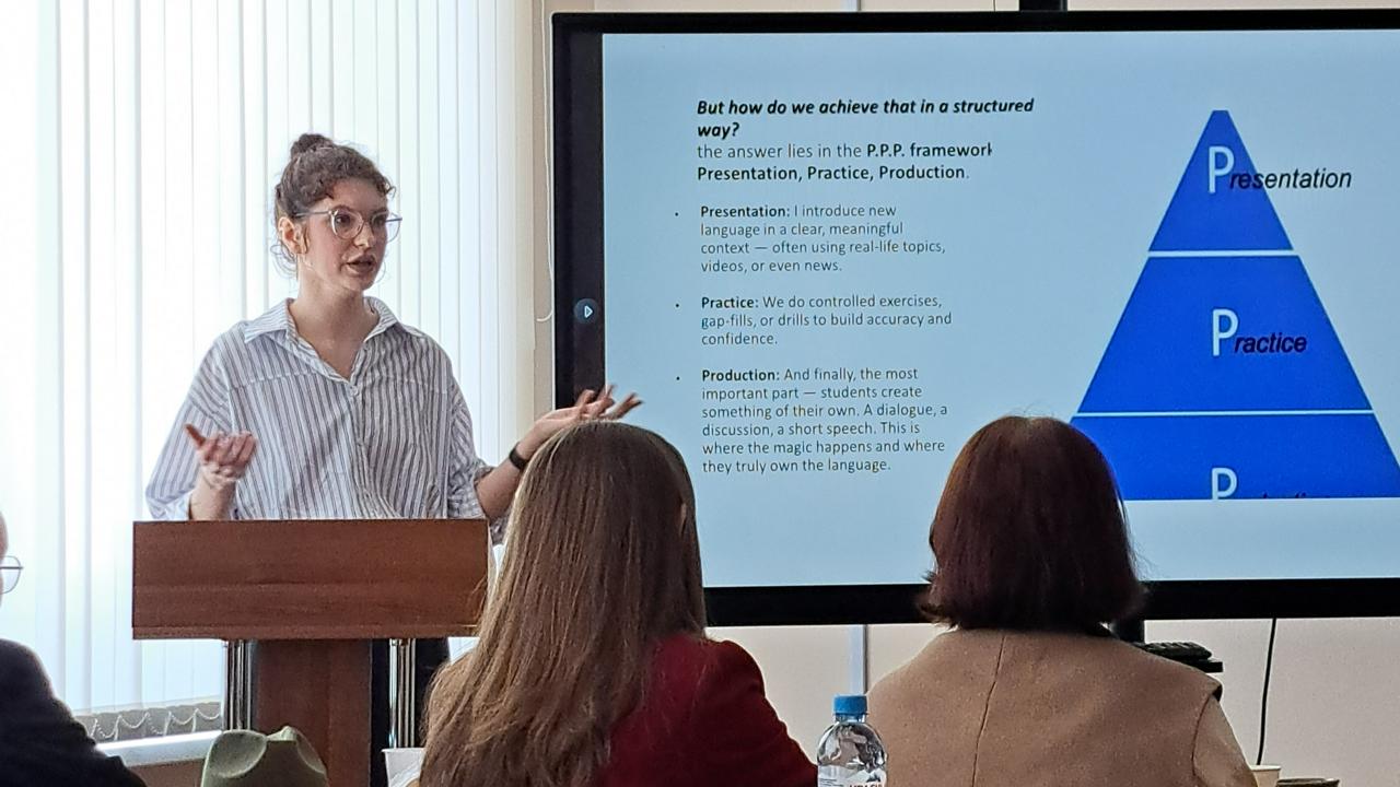 Пока школьники были в путешествии по станциям, их наставники приняли участие в профессионально-методической мастерской учителей английского языка. В качестве спикеров приняли участие директор автономной некоммерческой организации поддержки и развития проектов в сфере развития просвещения, культуры и спорта «Лидеры будущего» Артеменко Юлия Ренатовна и педагог направления «Английский для лидера» Павлова Ольга Вячеславовна. Они поделились своим ценным опытом проведения Field Trips – уникальной формы работы, способствующей реальному погружению в языковую ситуацию. Руководитель школы английского языка «Красная панда» Юсупова Алёна Игоревна провела мастер-класс «Ботаника на уроках английского языка на примере австралийских растений». Преподаватель английского языка Шаймиев Руслан Вадимович выступил с докладом на тему «Актуальные технологии фонетической коррекции: инструменты для снижения иностранного акцента в речи». Преподаватель английского языка, онлайн тьютор Бородина Мария Георгиевна поделилась опытом подготовки школьников к экзаменам – «От учебника к реальности: как использовать современные страноведческие реалии и инфоповоды в изучении английского языка».