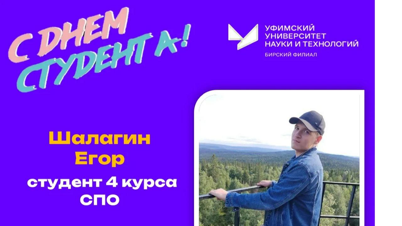 Шалагин Егор — пример лидера-борца. Председатель профбюро колледжа, отличник, серебряный призёр республиканских соревнований по рукопашному бою. Его путь — это дисциплина, воля и постоянное развитие. В 2025 году он подтвердил свой высокий статус, став также стипендиатом профсоюза БФ УУНиТ.
