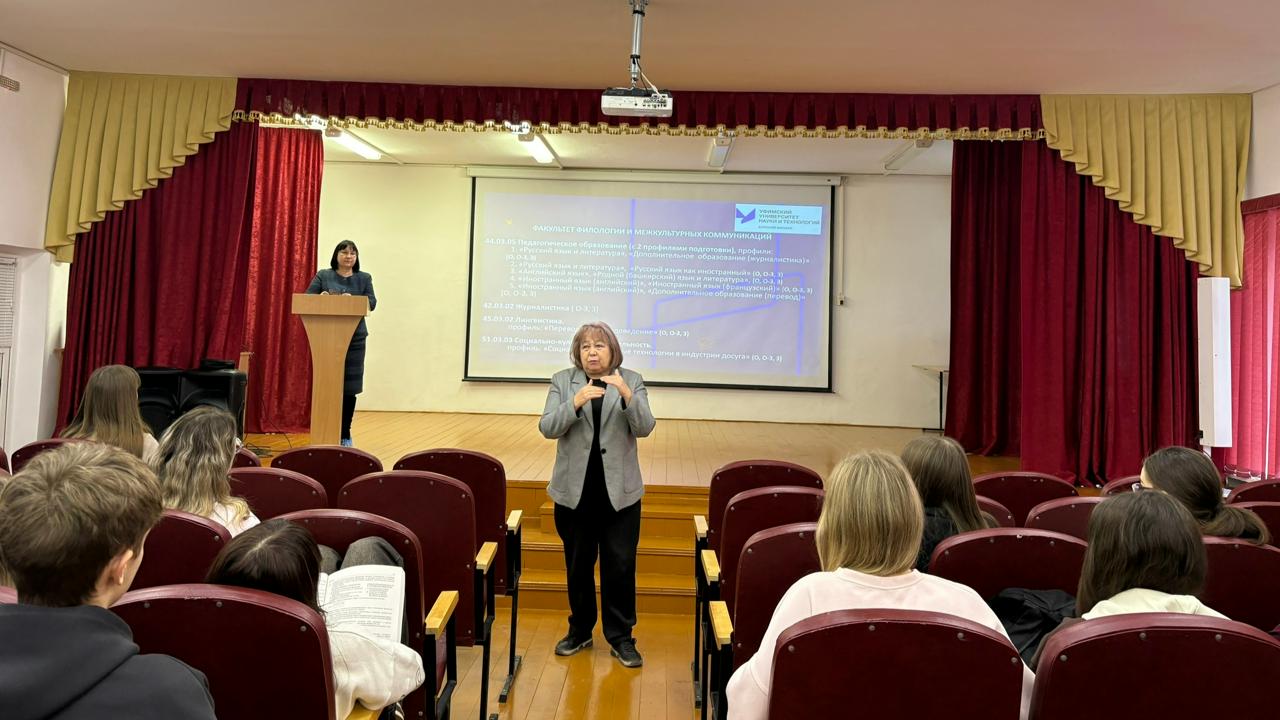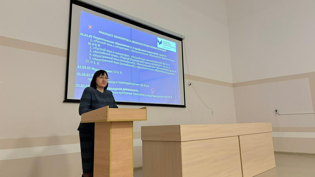 28 ноября 2025 г. представители Бирского филиала УУНиТ встретились с выпускниками школ с. Шаран и Шаранского района. Обучающиеся узнали много нового о Бирском филиале УУНиТ благодаря рассказам начальника отдела приёма, профориентации и трудоустройства Сайсановой Г. Д., заведующей кафедрой романо-германской филологии и лингводидактики Хамидуллиной Л. К. Студент 5 курса факультета филологии и межкультурных коммуникаций Габдуллина Алия, выпускница СОШ 2 с. Шаран, поведала об организации учебного процесса в вузе, досуговой деятельности, видах и размерах стипендий. Также Алия провела специально для выпускников филологический квиз. Дети с удовольствием приняли участие и получили памятные призы. Желаем всем выпускникам удачи и успехов! Благодарим за содействие в организации мероприятий МКУ Отдел образования МР Шаранский район в лице начальника Пастухова М.А. Также признательны за помощь заведующей методическим кабинетом Газизовой И.Л. Надеемся на дальнейшее сотрудничество. #ноябрь_2025_БФ_УУНиТ #профориентация_БФ_УУНиТ_2025
