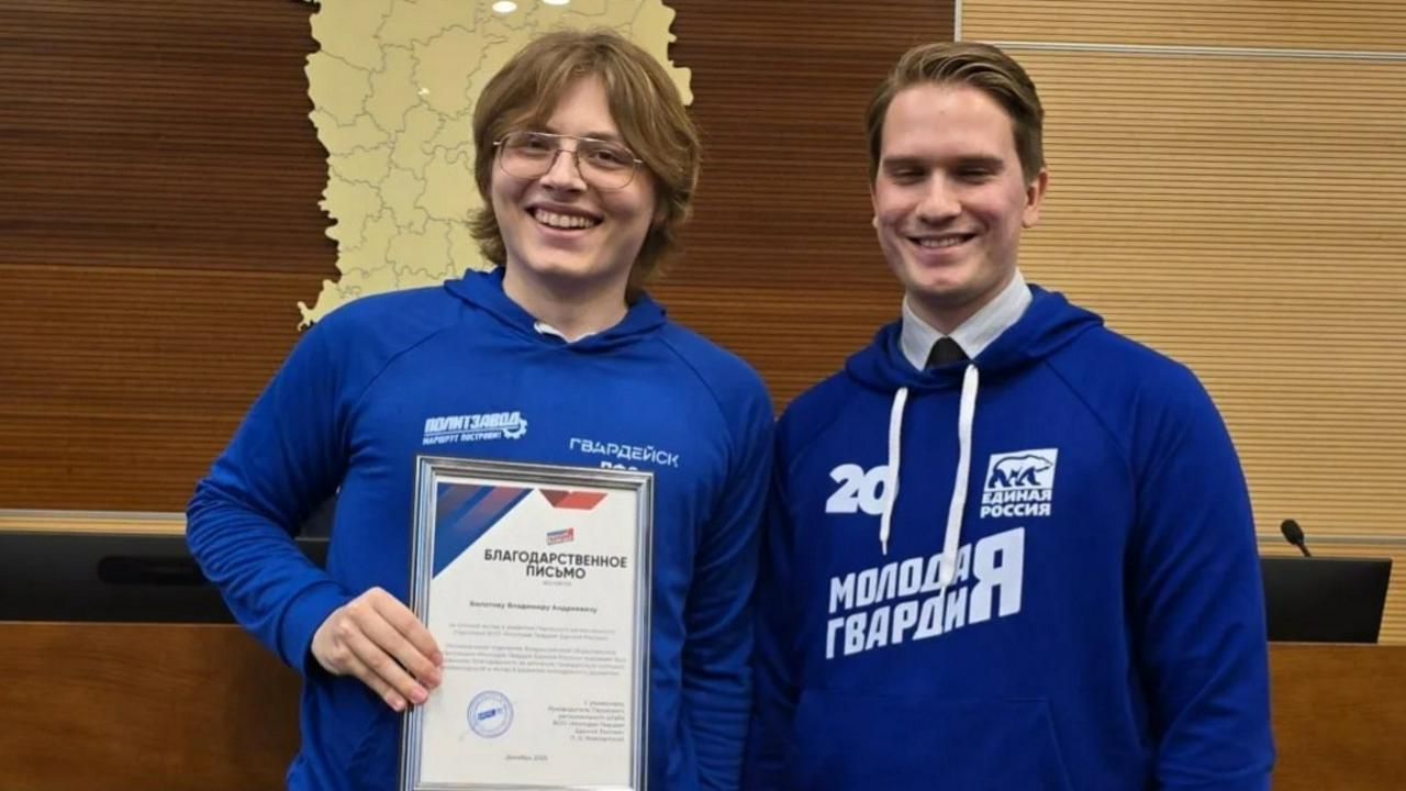 Студент социально-гуманитарного факультета Бирского филиала Уфимского университета науки и технологий Владимир Андреевич Болотов был отмечен благодарственным письмом от Пермского регионального отделения Всероссийской общественной организации «Молодая Гвардия Единой России». Награда была вручена за личный вклад, активную гражданскую позицию и участие в развитии молодёжного движения.