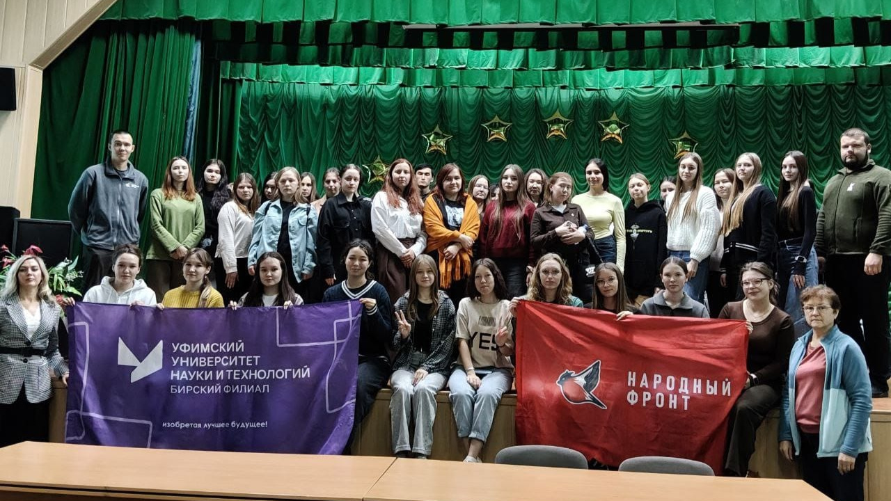 23 октября в Бирском филиале Уфимского университета науки и технологий состоялась встреча студентов с координатором «Молодежки Народного фронта» в Республике Башкортостан Рустамом Ринатовичем Салахутдиновым и специалистом по работе с молодежью ОК «Космос» Алексеем Константиновичем Токаревым. Мероприятие было посвящено волонтерской деятельности и гуманитарным проектам.
